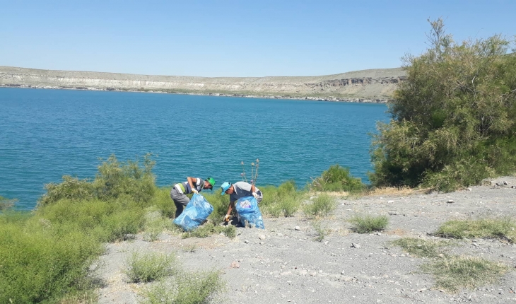Göl çevresinde temizlik yapan ekipler, bölgeyi atıklardan temizledi.