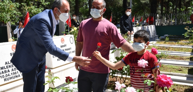 Bakan Gül, ziyaretinde şehit mezarlarına karanfil bıraktı, şehit aileleriyle bir süre sohbet ederek, başsağlığı diledi.