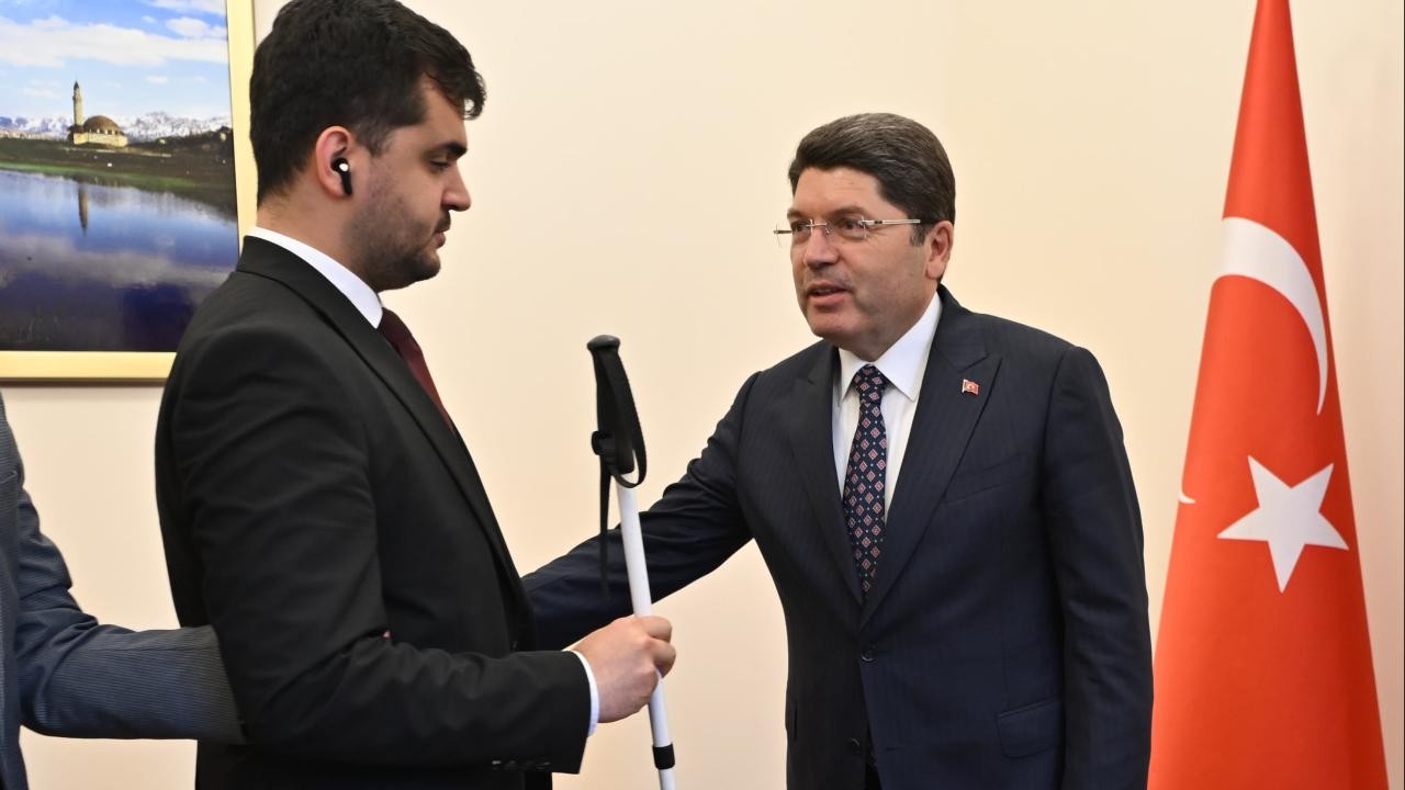 Adalet Bakanı Yılmaz Tunç, görme engelli ilk hakim adayı Sabit Keskin'le Meclis'te bir araya geldi.