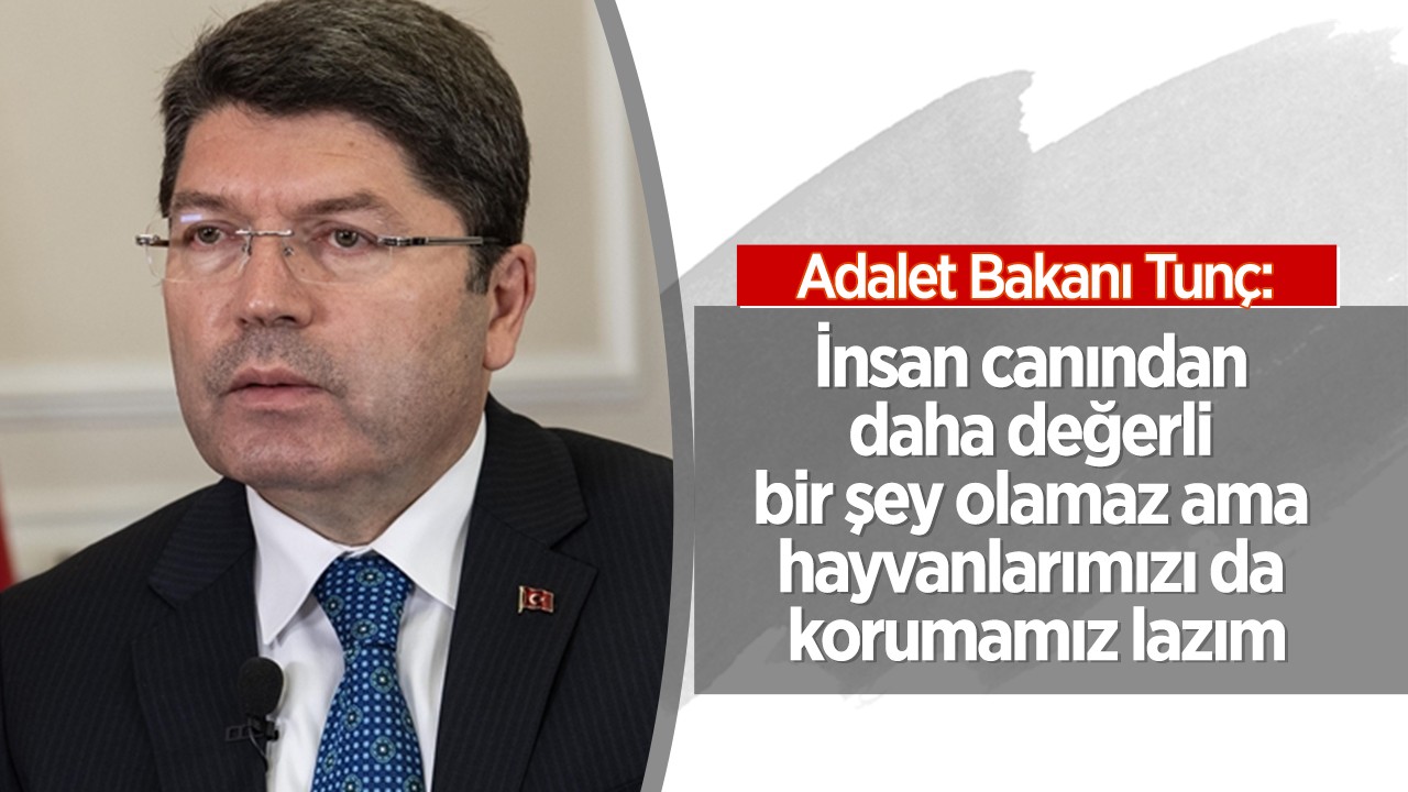 Adalet Bakanı Yılmaz Tunç, Anadolu Yayıncılar Federasyonunun "Anadolu Sohbetleri" etkinliğine katıldı. Sokak hayvanlarıyla ilgili problemin de çözülmesi gerektiğini ifade eden Tunç, "İnsan canından daha değerli bir şey olamaz. İnsanı korumak devletin en önemli vazifesi. Ama hayvanlarımızı da korumamız lazım. Onların daha sağlıklı ortamlarda hayat sürmelerini sağlamak lazım." dedi.