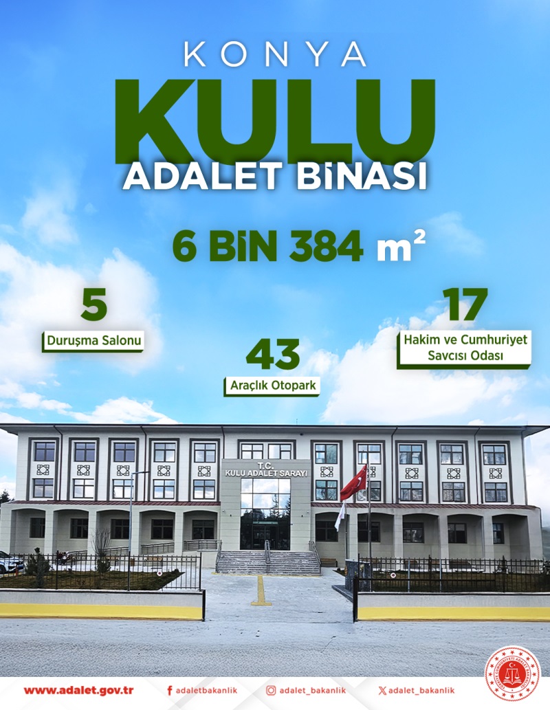 Adalet Bakanı Tunç, düzenlenecek törenle Kulu Adalet Binasının açılışını yapacak.