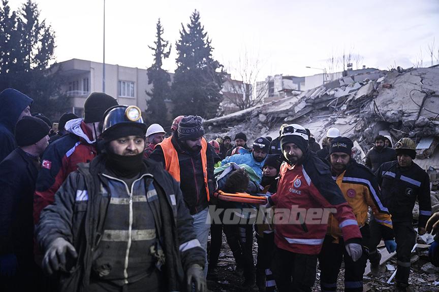 Merkez üssü Kahramanmaraş'ın Pazarcık ve Elbistan ilçeleri olan ve toplamda 10 ili etkileyen 7,7 ve 7,6 büyüklüğündeki depremlerin ardından arama kurtarma ekipleri, Adıyaman Sümenevler Mahallesi'ndeki 5 katlı apartmanın enkazında arama kurtarma çalışması yaptı.