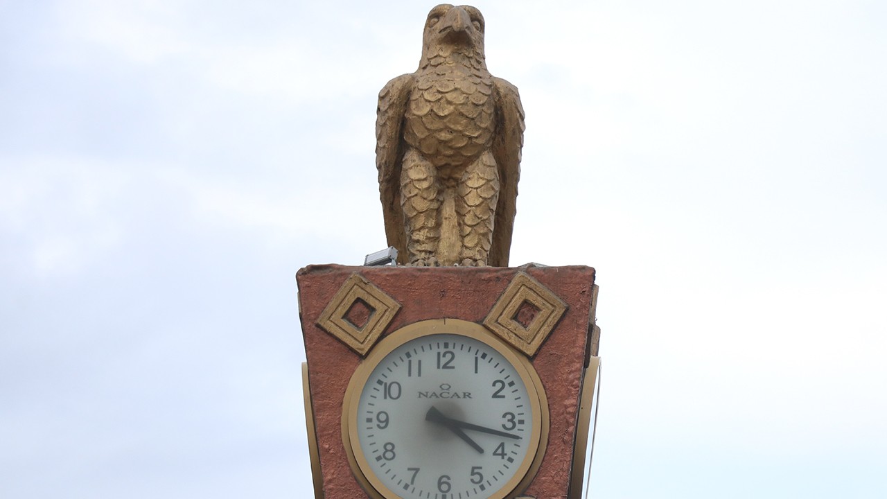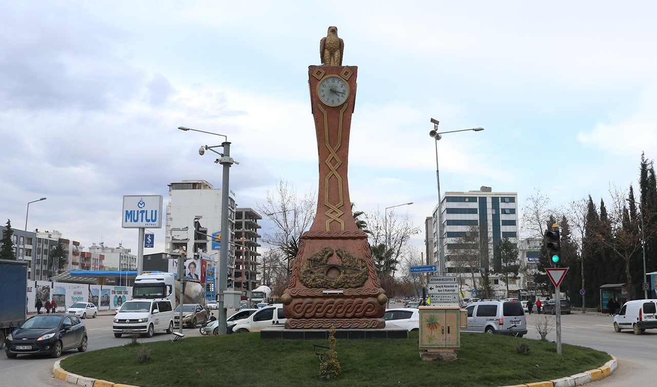 Kahta ilçesindeki tarihi Karakuş Tümülüsü'nün simgesi olan kuşun yer aldığı saat kulesindeki saatler, Kahramanmaraş merkezli ilk depremin yaşandığı 6 Şubat günü saat 04.17'de durdu.