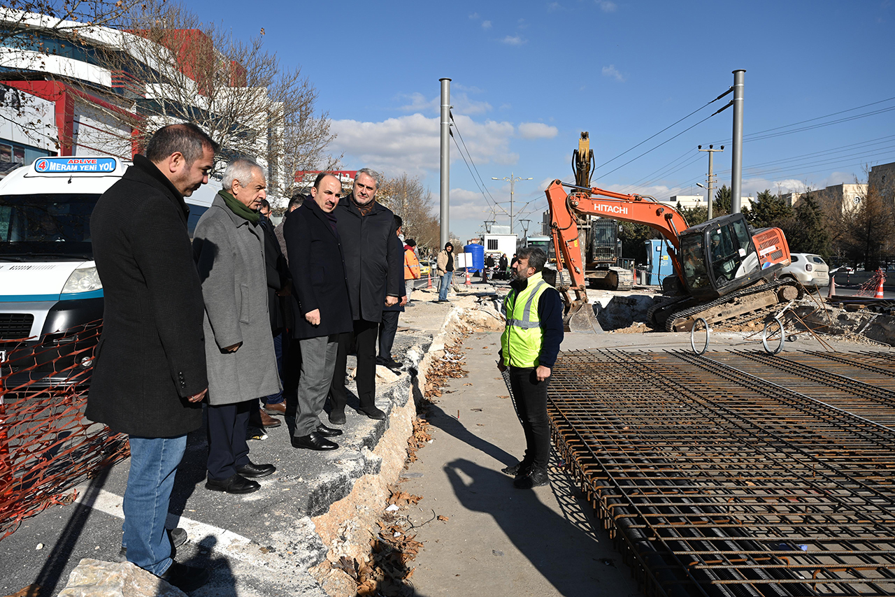 Konya Büyükşehir Belediye Başkanı Uğur İbrahim Altay, Adliye-Şehir Hastanesi-Yeni Sanayi Tramvay Hattı çalışmalarında incelemelerde bulundu. Yılın ilk aylarında Adliye-Şehir Hastanesi tramvayını Konyalıların hizmetine sunmayı planladıklarını belirten Başkan Altay, “Şehir Hastanesi-Yeni Sanayi etabında da artık imalatların sonlandırılmasıyla ilgili süreçleri takip ediyoruz. Bakanlığımızın yürüttüğü İkinci etapta çalışmalar hız kesmeden devam ediyor. Hava şartlarına rağmen ekipler yoğun bir şekilde çalışmaya devam ediyor. Bütün gücümüzle şehrimizin raylı sistem ağını güçlendirmeye gayret ediyoruz” dedi.
