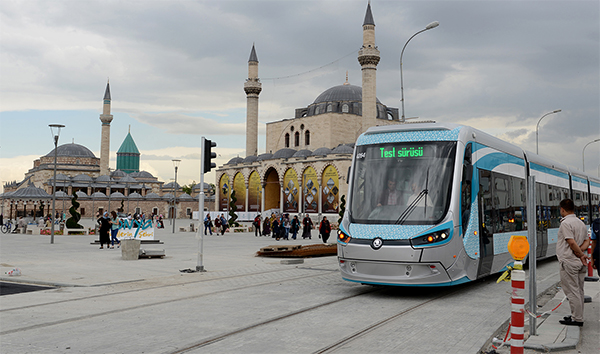Gidiş-geliş 14 kilometrelik hattın Türkiye’de bir ilki oluşturduğunu vurgulayan Başkan Akyürek, “Dünyadaki en ileri teknolojiyi uyguladığımız hattın, Alaaddin ile Mevlana Kültür Merkezi arasında tarihi dokuya uygun olarak direk ve tel bulunmuyor. Yeni tramvaylarımız bu bölgede katanersiz olarak çalışacak. Yine bu alanda hattımız taşıt trafiği ile birlikte işleyecek. Hattın Mevlana Türbesi’nden sonraki belli bölgelerine çim döşemesi de yapıldı. Şehrimize çok önemli bir can damarı kazandırdık” dedi.