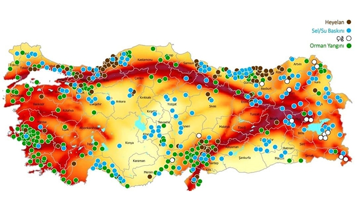Kayıt altına alınan veriler arasında Türkiye'de geçen yıl yaşanan afetler de yer aldı. Geçen yıl meydana gelen; 107 sel/su baskını, 66 orman yangını, 16 kar/tipi, 39 heyelan da ARAS üzerinden kayıt altına alındı. En çok heyelan olayı Batı ve Doğu Karadeniz'de görülürken, Ege ve Akdeniz ise ile orman yangınları mücadele etti.