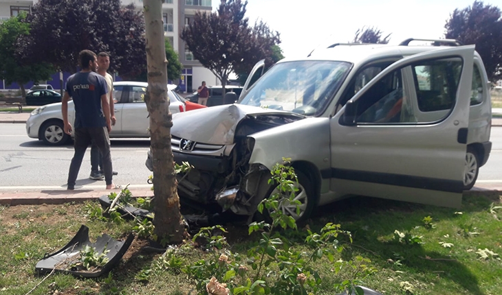 Konya'nın Selçuklu ilçesinde seyir halindeki kamyonet, başka bir aracın trafikte sıkıştırması sonucu yoldan çıkarak ağaca çarptı. Kazada 2 kişi hafif şekilde yaralandı.