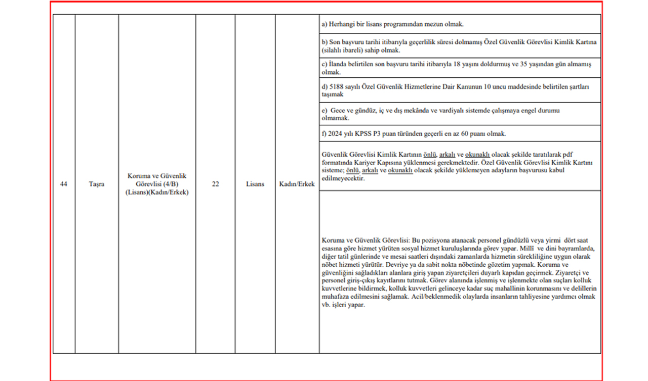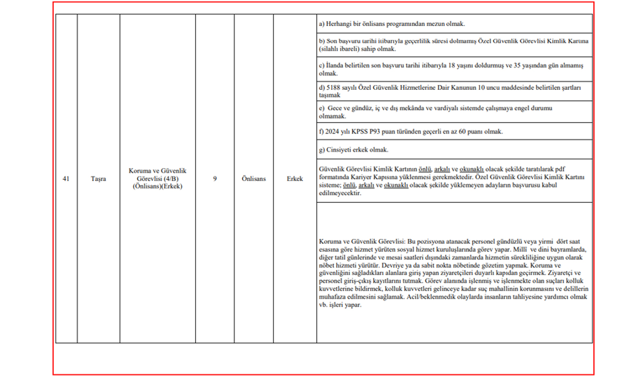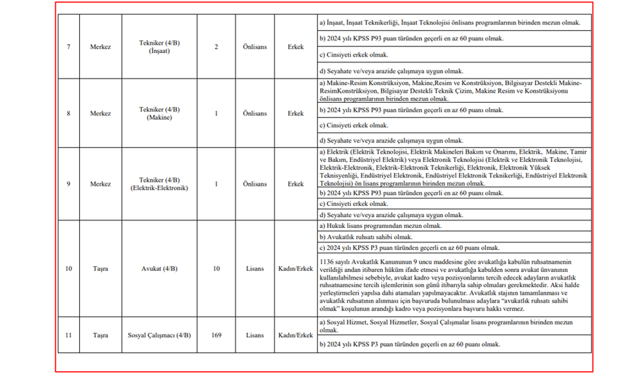 Belirtilen süre içinde Cumhurbaşkanlığı Kariyer Kapısı üzerinden yapılmayan başvurular dikkate alınmayacaktır.