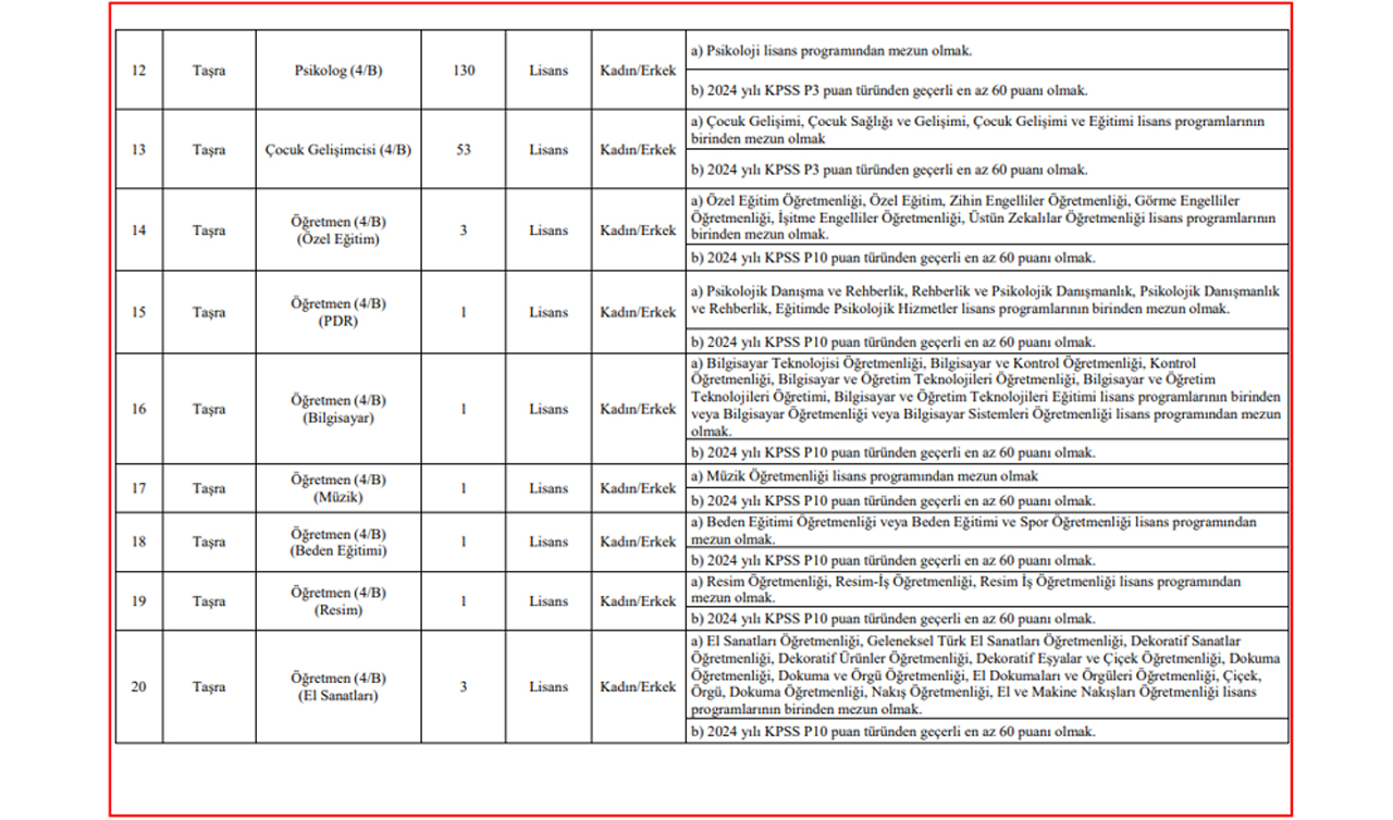 b) Son müracaat tarihi itibariyle başvuru yapılan sözleşmeli pozisyon için istenilen bölümden mezun olmak, (başvurduğu sözleşmeli personel pozisyonu için belirlenen öğrenim düzeyinin üstü bir öğrenim düzeyinde mezun durumda olup bu öğrenim düzeyinde KPSS puanı bulunan adayların başvuruları kabul edilmeyecektir.)