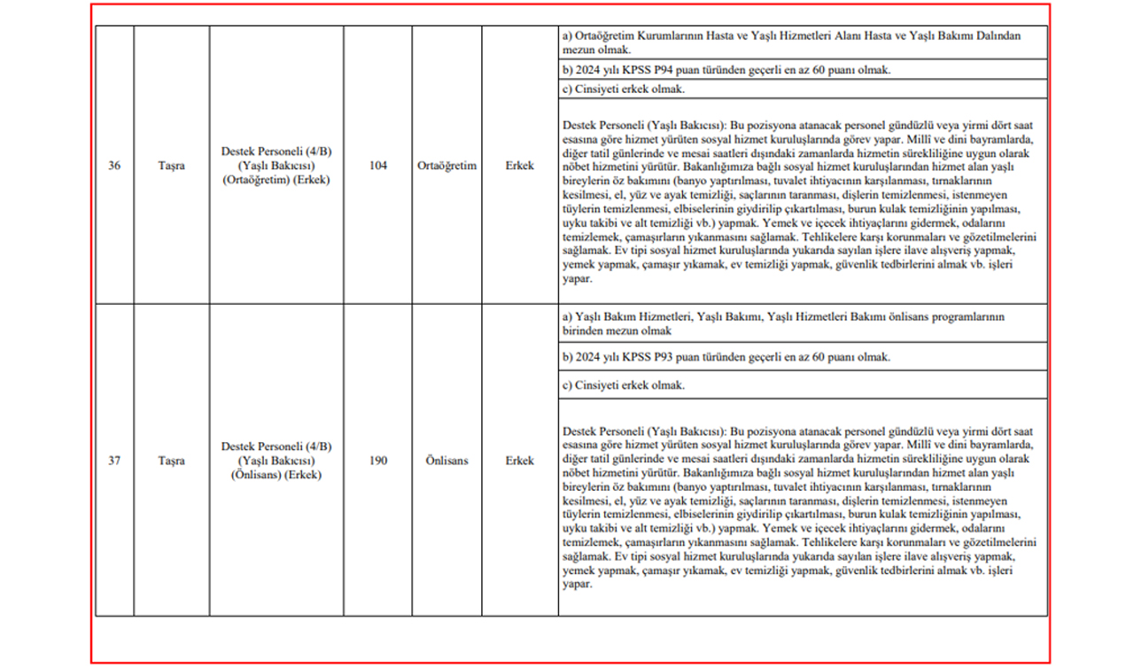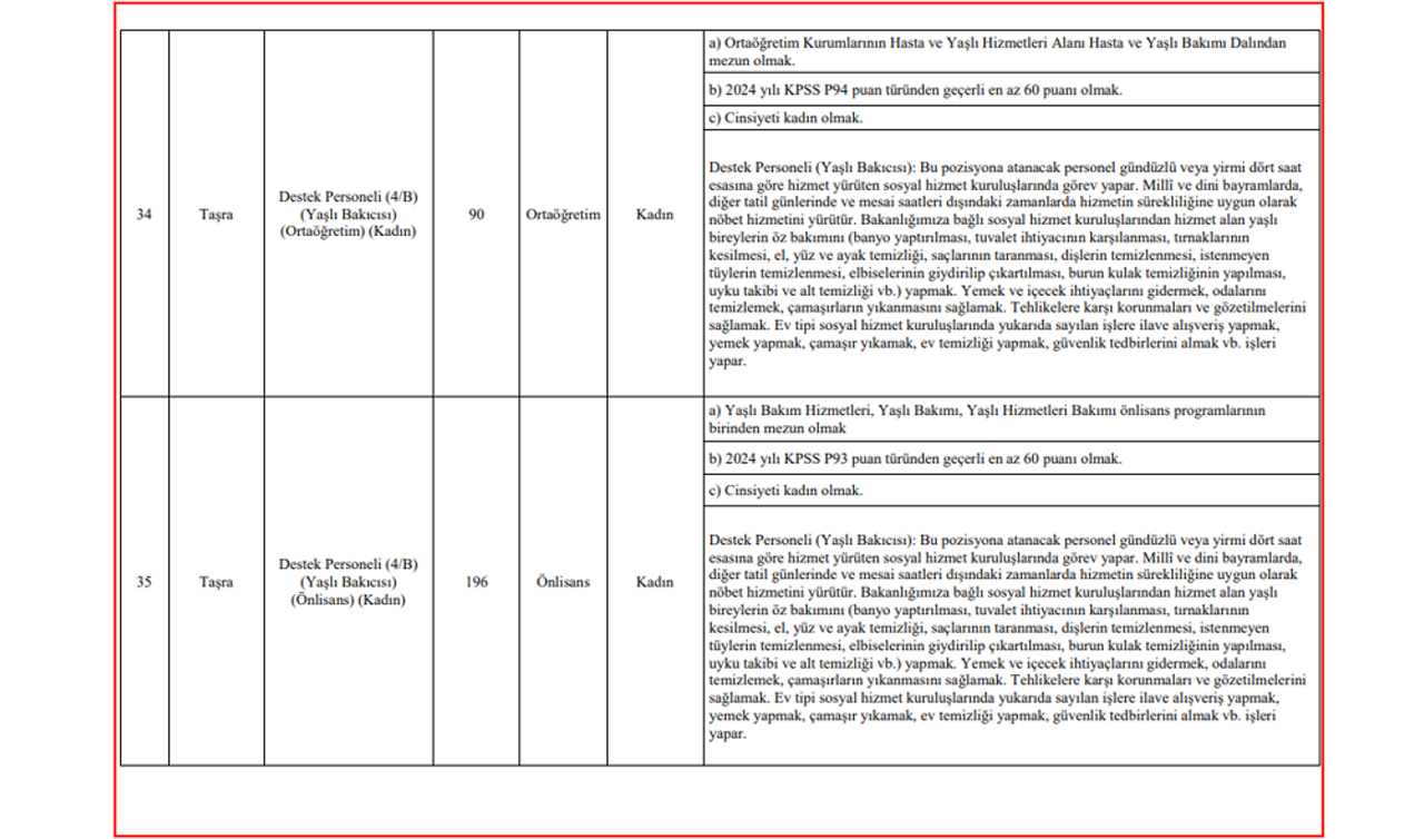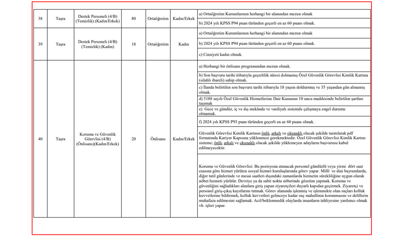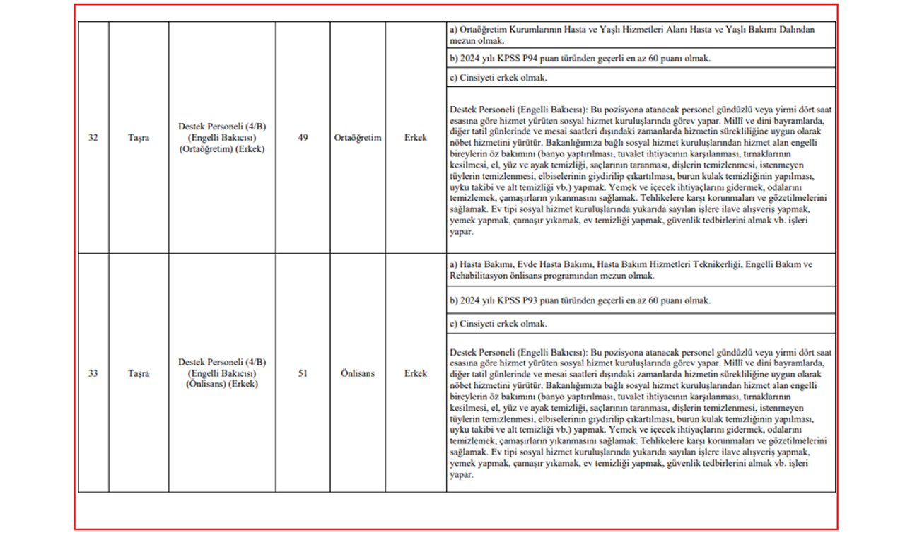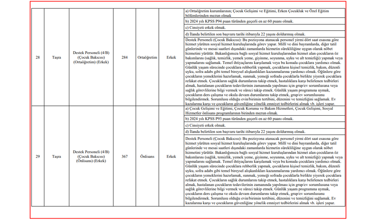 Aile ve Sosyal Hizmetler Bakanlığı 3 bin personel alımı başvuru şartları şu şekilde;