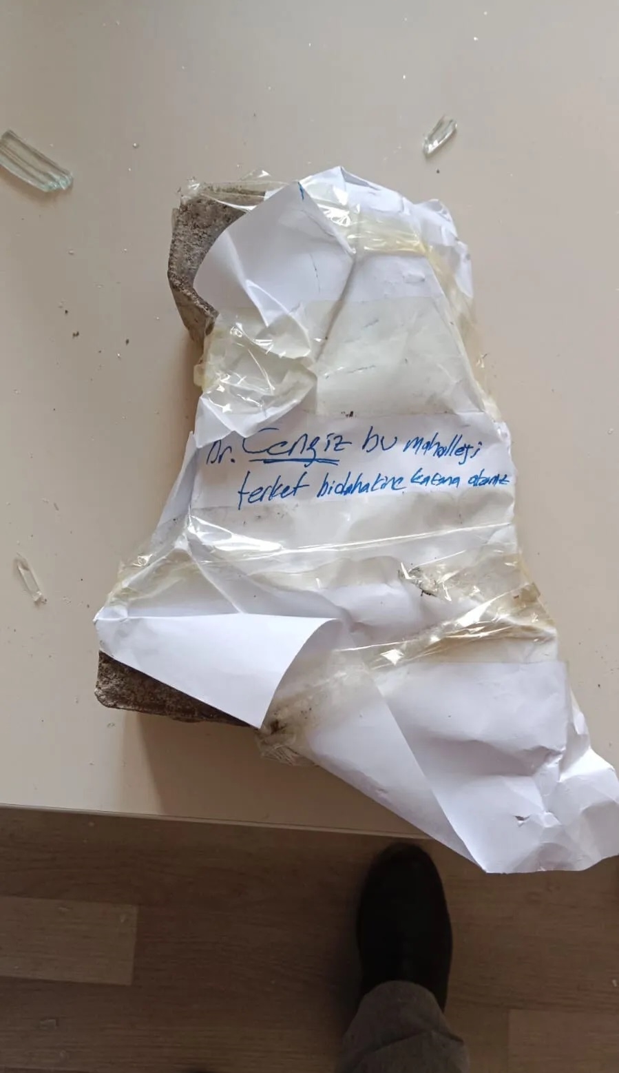 Olayda merkezin camı kırılırken, atılan taşa sarılı "Dr. Cengiz, bu mahalleyi terk et, bir dahakine kafana atarız." yazılı not bulundu. İhbarla adrese polis ekipleri sevk edildi.