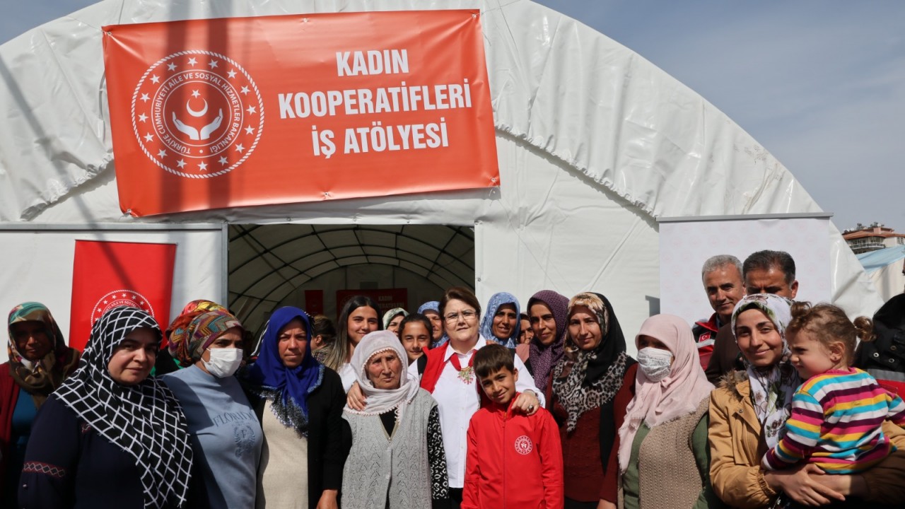 Aile ve Sosyal Hizmetler Bakanlığı, kadın kooperatiflerinin desteğiyle Gaziantep ve Kahramanmaraş'ta 2'şer, Adıyaman ve Malatya'da 1'er olmak üzere, çadır ve konteyner kentlerde 6 iş atölyesi açtı.