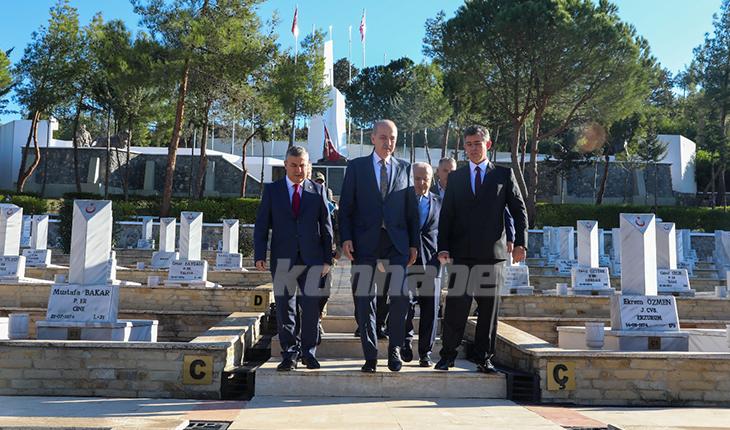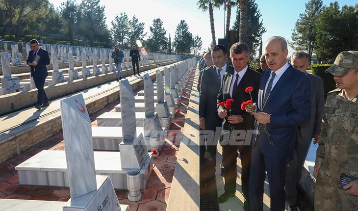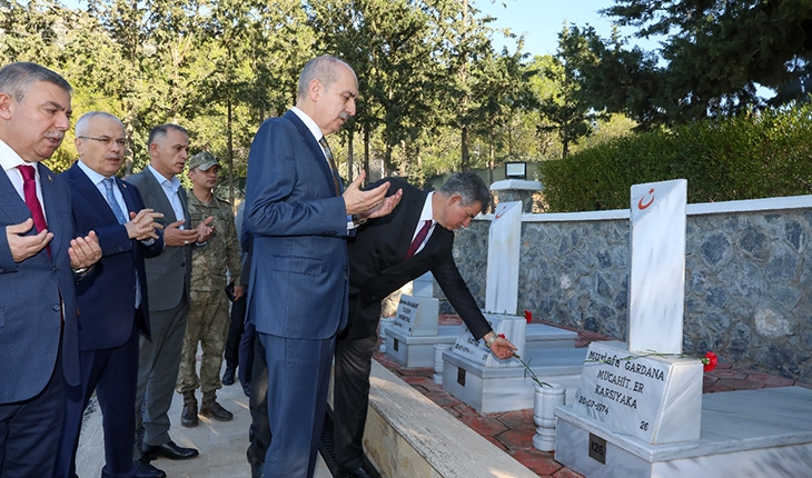 Kurtulmuş, ilk olarak Boğaz Şehitliği'nde askeri yetkililerden bilgi aldı, ardından dua edip şehit mezarlarına karanfiller bıraktı.