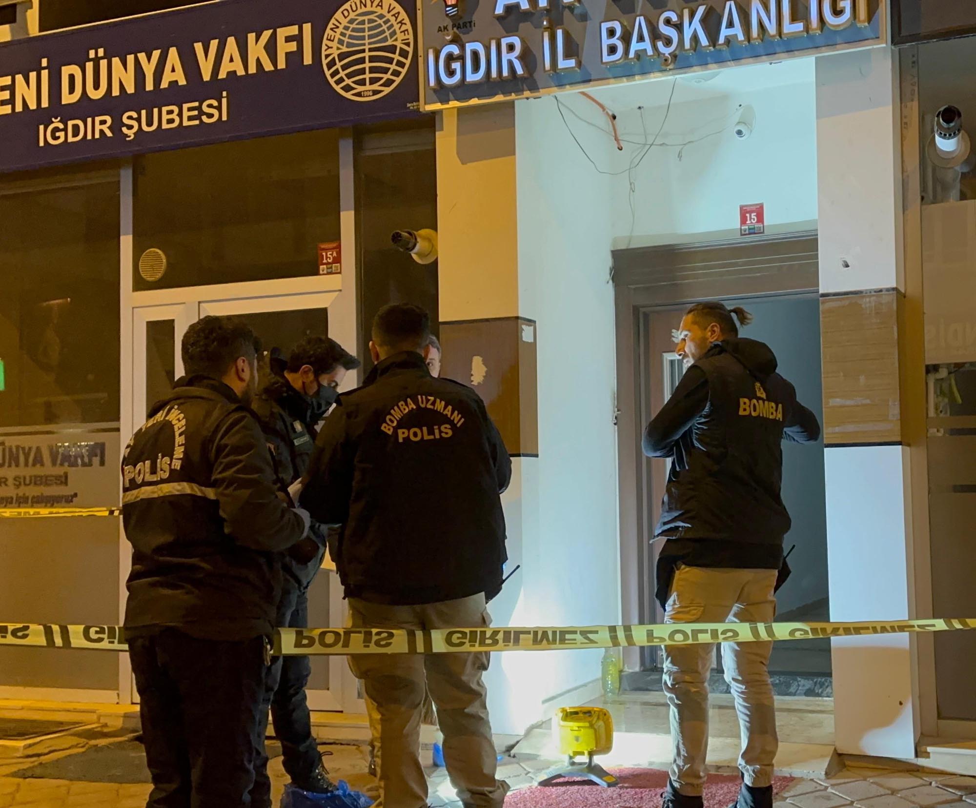 Saldırı sonrası parti binasına giden Iğdır Emniyet Müdürü Niyazi Turgay, olay yerinde incelemelerde bulundu. Turgay, saldırıyı 3 kişinin gerçekleştirdiğini 2 kişinin yakalandığı bilgisini verdi. Turgay, AK Parti İl Başkanı Ayaz’a da geçmiş olsun dileklerini iletti.