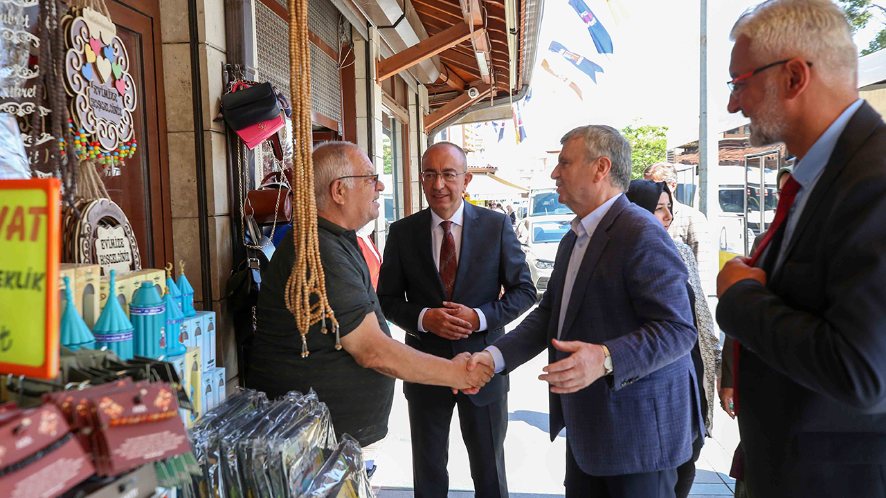 Ziyaretlerin ikinci bölümünde Mevlana Müzesi çevresindeki esnafı gezen Akyürek ve Kavuş, teşkilat mensupları hemşehrilerinin talep ve sorunlarını dinledi. Esnafın ülke ekonomisinin bel kemiği olduğunu vurgulayan Akyürek, “Konya büyüdükçe Türkiye büyüyor. Biz de her zaman hemşehrilerimizin yanında olmaya devam edeceğiz” ifadelerini kullandı. Program, MÜSİAD Konya Şubesi ziyareti ve iş adamlarıyla yapılan istişareleri ile devam etti. MÜSİAD Konya Şube Başkanı Osman Ulular ziyaretlerinden dolayı Milletvekili Akyürek ve Başkan Kavuş’a teşekkür ederken Tahir Akyürek de “Şehir ve ülke ekonomisine önemli katkı sunan tüm iş insanlarımıza şükranlarımı sunuyorum” şeklinde konuştu.