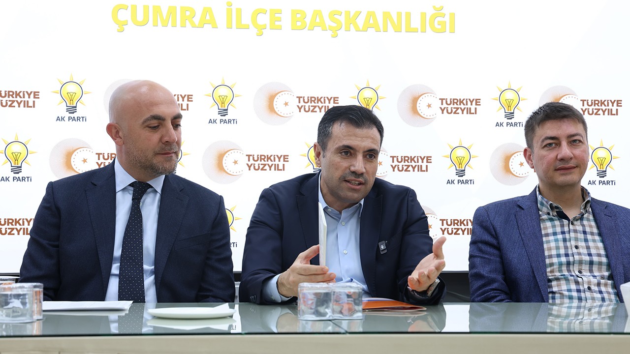 Program kapsamında ilk olarak AK Parti Çumra İlçe Teşkilatı’nda ana kademe, kadın kolları, gençlik kolları, belediye meclis üyeleri ve mahalle başkanlarıyla bir araya gelen Başkan Özgökçen, teşkilat çalışmaları hakkında değerlendirmelerde bulundu. Birlik ve dayanışma mesajlarının verildiği toplantıda, Türkiye Yüzyılı hedefleri doğrultusunda çalışmaların kararlılıkla sürdürüleceği vurgulandı.