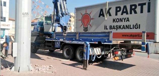 AK Parti Konya İl Teşkilatı da şehir estetiğine ve güzelliğine katkıda bulunmak amacıyla, teşkilat binası önündeki totem tabelayı kaldırdı.