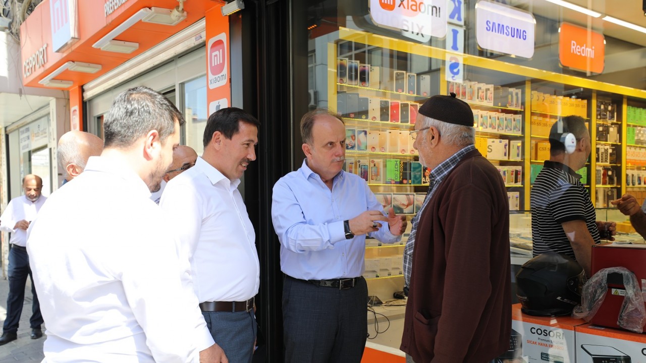 Esnafın talep ve önerilerini dinleyen Mehmet Baykan ile Hasan Kılca hizmetleri hakkında esnafları bilgilendirirken vatandaşlarla da sohbet ederek onların taleplerini dinledi.