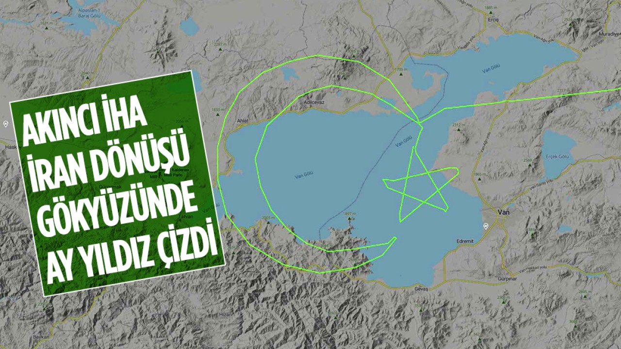 İran Cumhurbaşkanı İbrahim Reisi'nin bulunduğu helikopter enkazını tespit eden Akıncı İHA, İran'daki görevinden döndükten sonra Van Gölü üzerinde ay yıldız rotası çizdi.