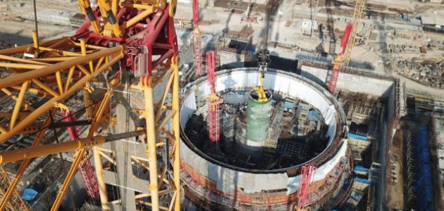 Akkuyu NGS inşaat sahasında birinci güç ünitesine ait reaktör basınç kabının kurulumu öncesinde, kabın ana ağırlık yükünü taşıyan bir destekleyici halka yapıya monte edildi.