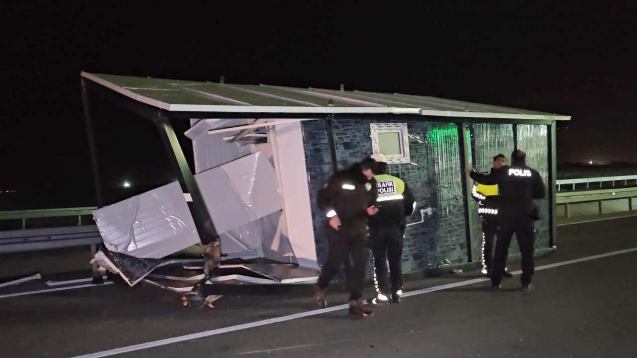 Aksaray'daki şiddetli fırtına nedeniyle tırın üzerinde bulunan konteynerler karayoluna düştü. Polis ekiplerinin yoğun mücadele verdiği olayda konteynerler kepçe marifeti ile kaldırıldı.