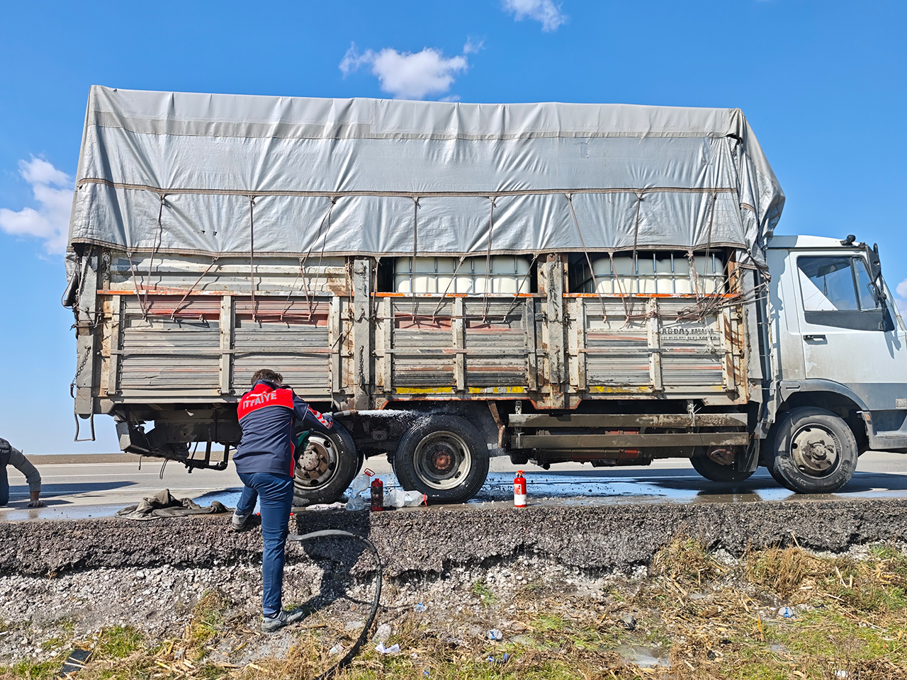 Araçta bulunan yangın tüpünü kullanan ve ardından 5 litrelik su bidonlarıyla yanan lastiğe müdahale eden sürücü, alevlerin kamyonun kasasına ve yakıt deposuna sıçramasını engelledi. Kısa sürede olay yerine ulaşan itfaiye ekipleri duman çıkan tekerleğe müdahale ederek yangını tamamen söndürdü. Sürücünün bilinçli müdahalesi sayesinde kamyon büyük bir hasar almadan yanmaktan kurtarıldı.