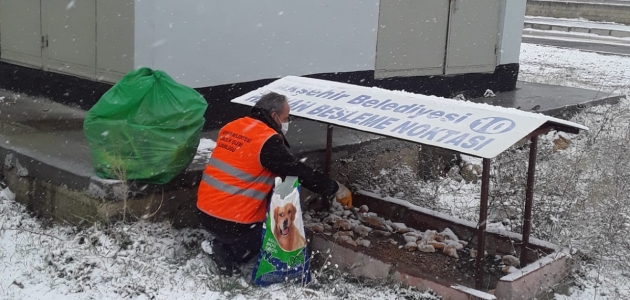 Akşehir Belediyesi zorlu kış şartlarında yem bulmakta zorlanan sokaklar hayvanları için uygun yerlere yem ve mama bırakmaya devam ediyor.