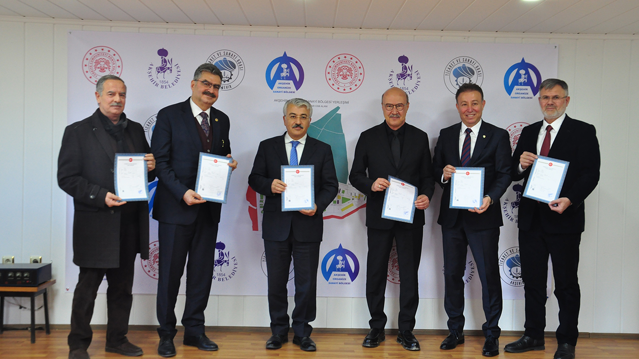 Akşehir Organize Sanayi Bölgesinin (OSB) genişleme alanlarına ait tapular, düzenlenen törenle teslim edildi.