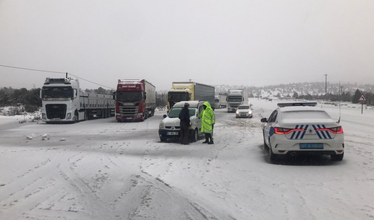 Akseki trafik ekipleri tarafından kar yağışı nedeniyle bölgede ağır tonajlı araçların geçişine izin verilmiyor. Tırlar Akseki Bölge Trafik Müdürlüğü ve dinlenme tesislerinde bekletiliyor.