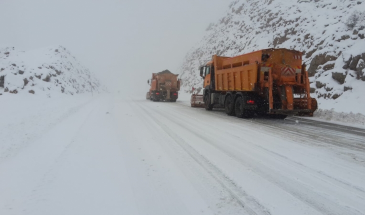 Kar yağışının başlaması ile birlikte karayolları Alacabel ekipleri harekete geçerek yolda biriken karları kürüme çalışmaları başlattı.