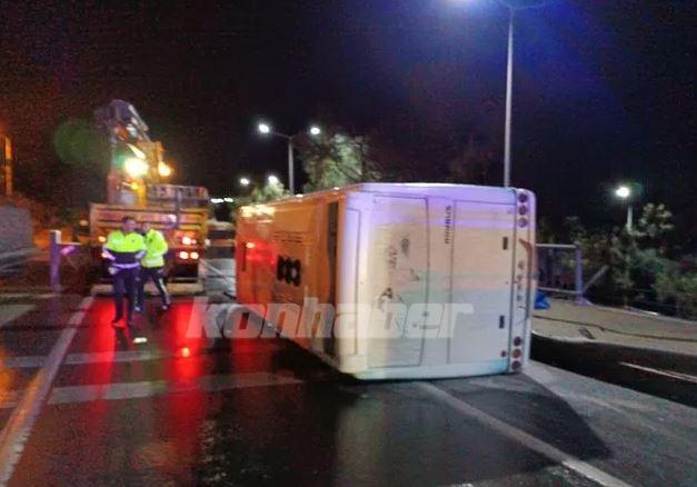Kestelsporlu futbolcuların bulunduğu otobüs, sürücüsünün direksiyon hakimiyetini kaybederek bariyerlere çarpması sonucu yan yattı.