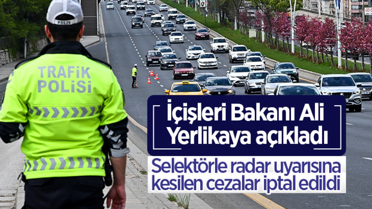 Yerlikaya açıklamasında, bayramda Düzce’de diğer sürücülere selektörle radar denetimini haber veren 14 sürücüye kesilen trafik cezalarının iptal edildiğini açıkladı.