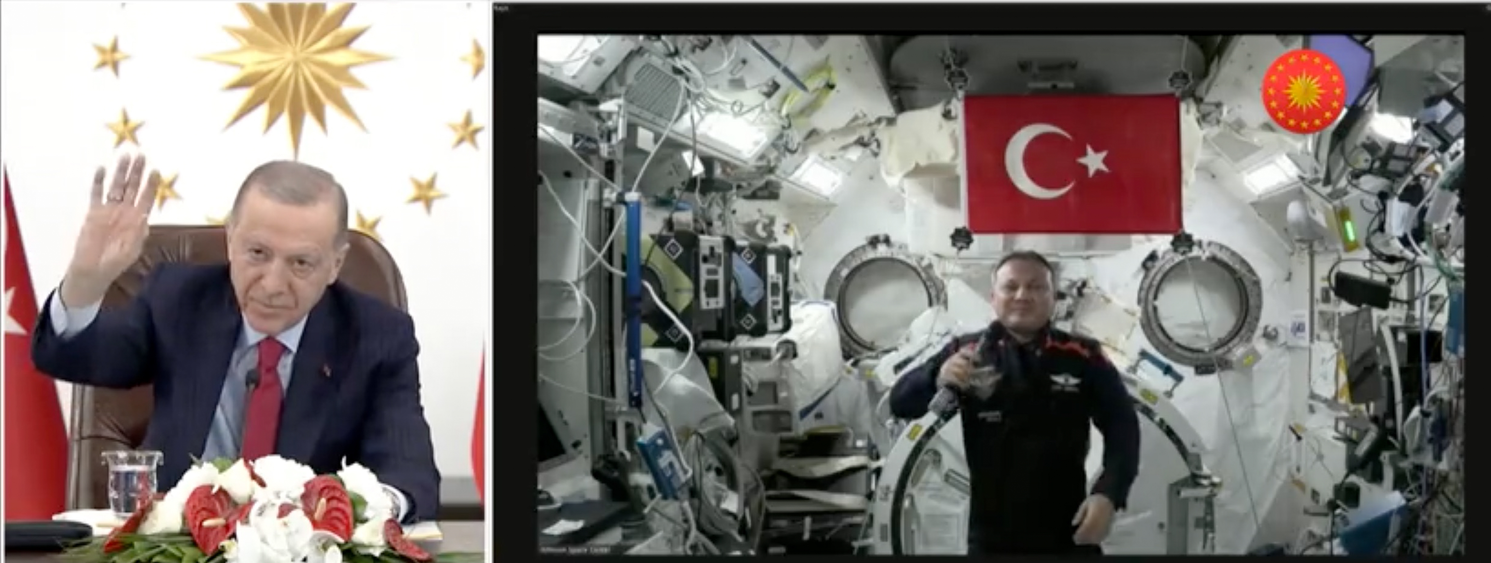 Cumhurbaşkanı Recep Tayyip Erdoğan, "İlk İnsanlı Uzay Misyonu" kapsamında Uluslararası Uzay İstasyonu'ndaki ilk Türk astronot Alper Gezeravcı ile canlı bağlantı yoluyla görüştü.