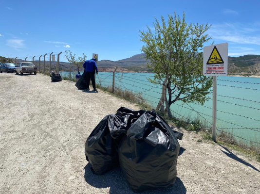 Kuraklık nedeniyle su seviyesinin düşmesiyle birlikte kıyı şeritlerinde oluşan atıkların temizlenmesi için yapılan geniş çaplı temizlik çalışmasında sonrası toplanan atıklar, geri dönüşüme gönderilerek çevrenin korunmasına katkı sağlandı.