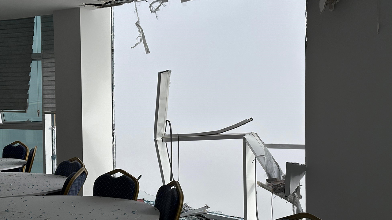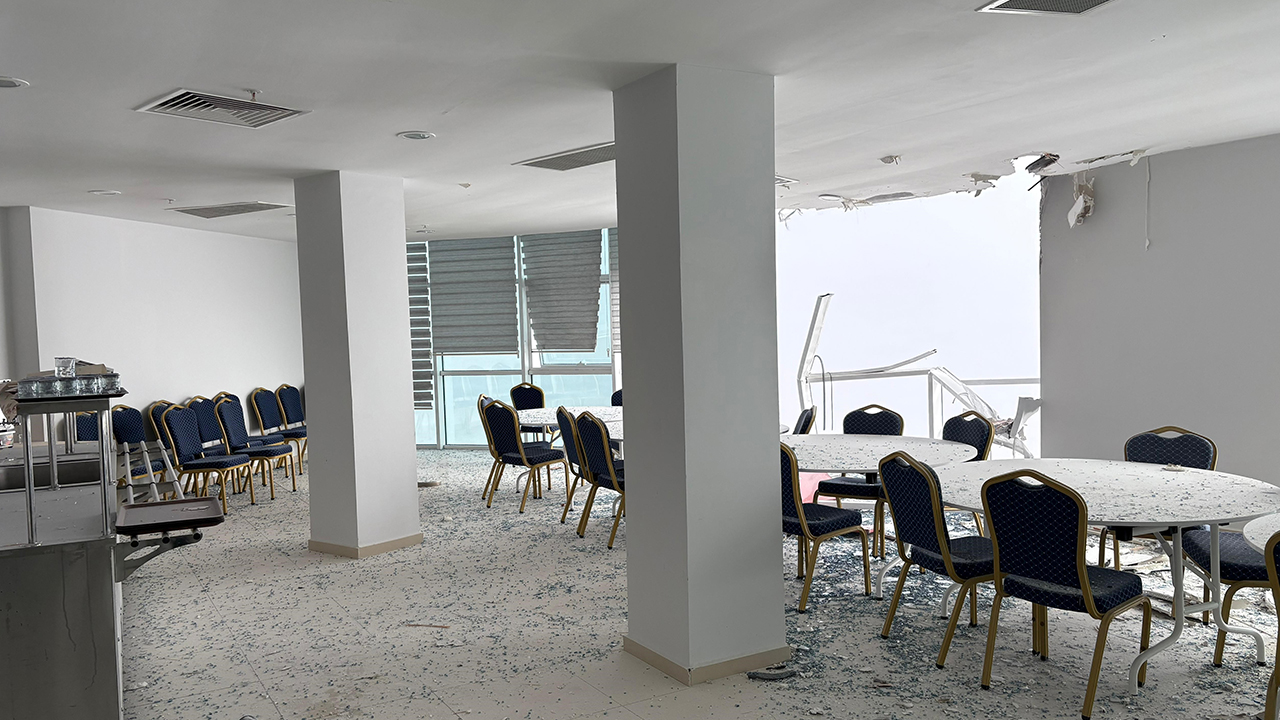 Ambulans helikopterin hastanenin dördüncü katındaki yemekhane bölümüne çarptığı yer hastane içerisinden görüntülendi. Görüntülerde hastane içindeki, duvar ve pencerelerdeki tahribat yer alıyor.