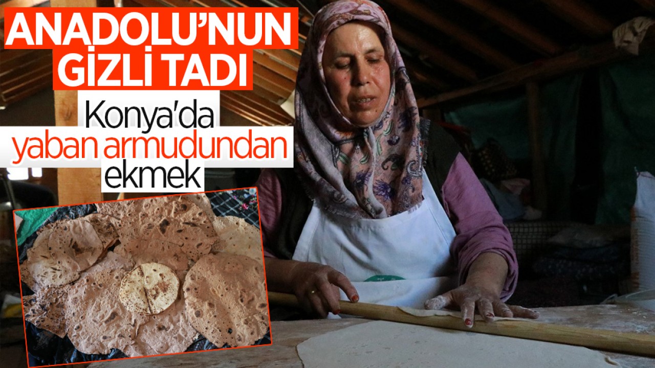 Konya'nın Orta Toroslardaki Hadim ilçesinde yaşayan 60 yaşındaki Meryem Sevinç, yaban armutlarını kurutarak elde ettiği unla yufka ekmek yapıyor. Yaban armudundan yapılan yufka ekmekler ise Anadolu'nun gizli kalmış lezzetlerinden sadece biri olarak dikkat çekiyor.