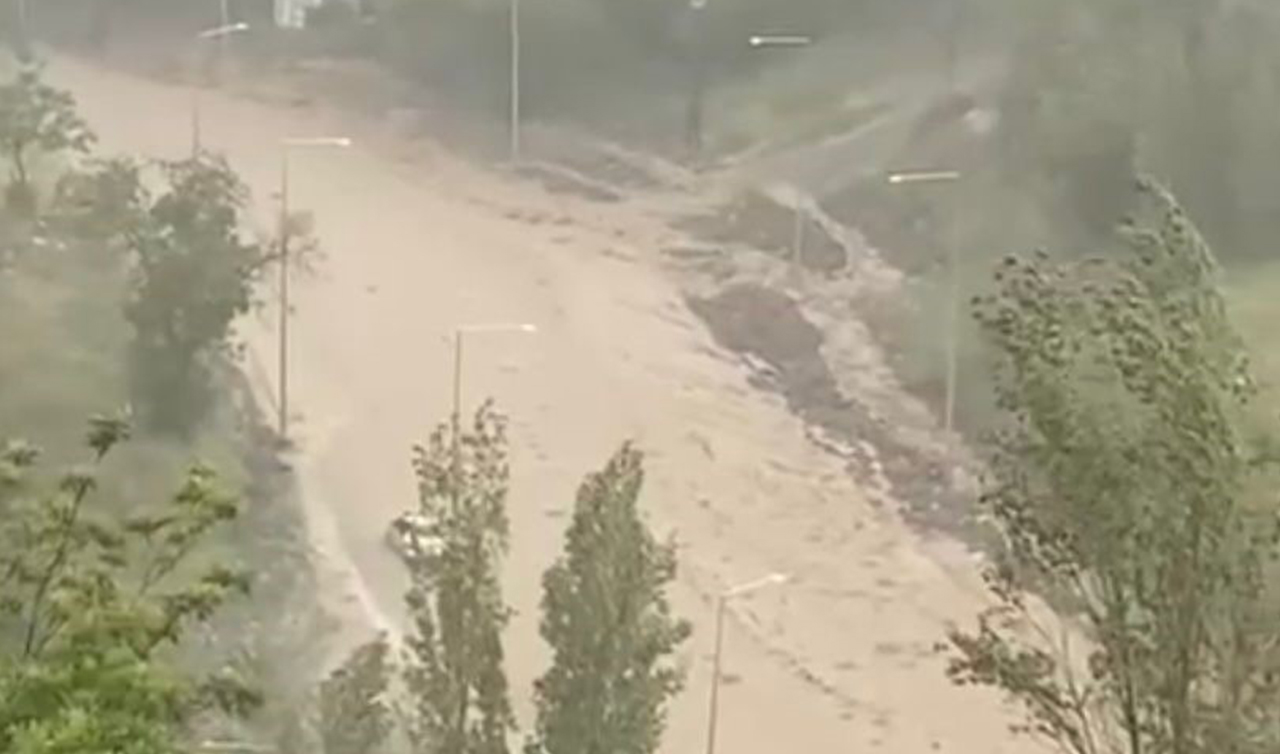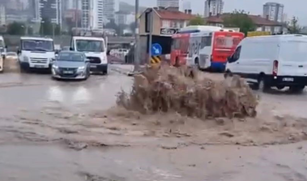 Ankara'da etkili olan gök gürültülü kuvvetli sağanak nedeniyle yollar suyla doldu. Arızalanan araçlar yolda kaldı.