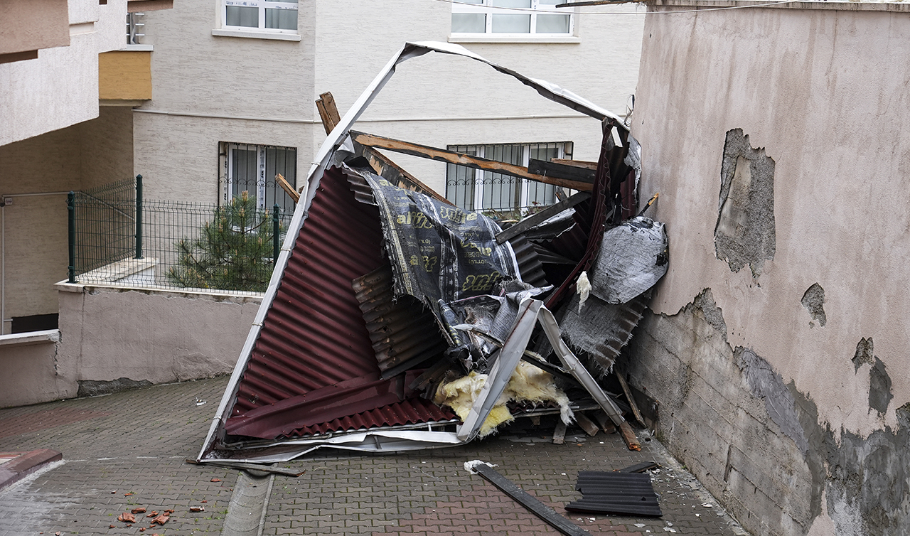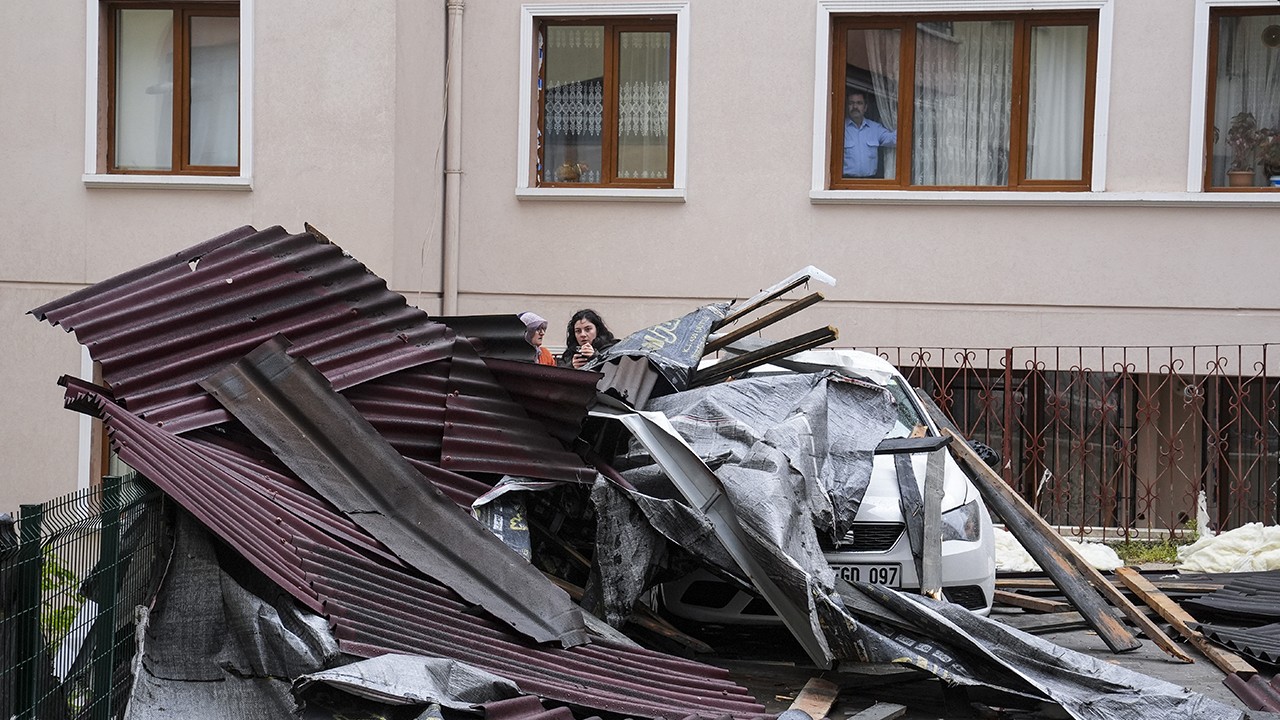 Keçiören Bademlik Mahallesi 1162. Sokak'ta fırtınanın etkisiyle bir apartmanın çatısı uçtu, etrafa saçılan malzemeler, park halindeki 4 otomobilde hasara neden oldu. İtfaiye ekipleri, çatılardan etrafa yayılan tuğla parçaları ile çanak antenleri topladı.