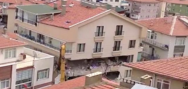 Ankara'da temelinde boşluk olduğu için çökme tehlikesi bulunan 8 katlı binanın yıkımına başlandı.