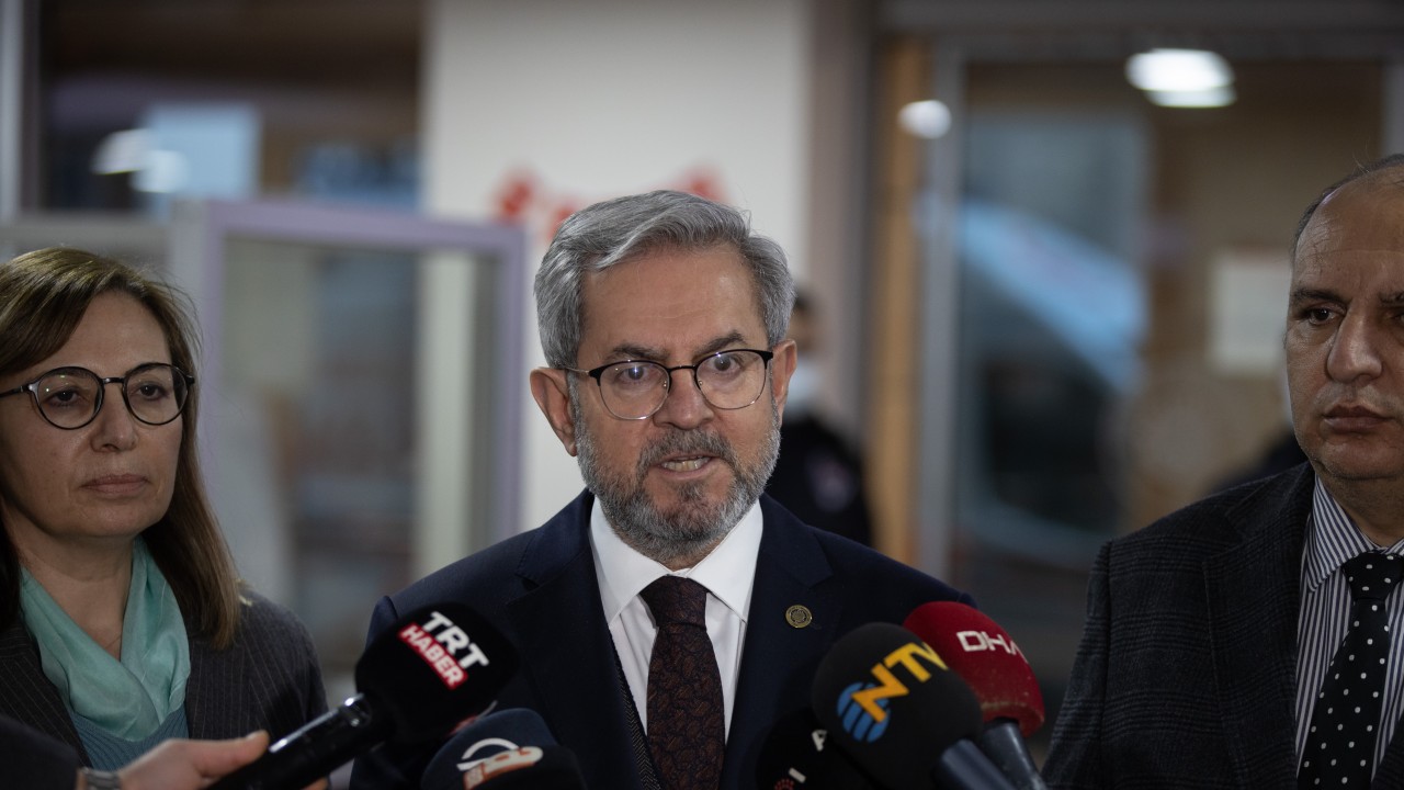 "183 saat sonra enkazdan çıkarılan Ayça kardeşimiz de burada yatıyor. Onu da ziyaret ettim. Acıktın mı diye sordum, 'acıktım' dedi. Üşüdün mü diye sordum, 'üşümedim çünkü salonun halısı üzerime düşmüştü' dedi. Hakikaten olağanüstü durumlarla karşı karşıya kalabiliyoruz. Çok canımız yandı, çok vatandaşımız vefat etti, 100 binin üzerinde yaralımız var. Bize düşen o yaralılarımızın en güzel şekilde tedavi edilmesi. Sağlık teşkilatımızın her bir bireyi insan üstü çalışıyor. Arama kurtarma ekibinin sağ ya da yaralı kurtardığı her bir bireyi olağanüstü gayretle tedavi ediyorlar. Ankara Üniversitesi, hem İbni Sina hem de Cebeci hastanelerindeki doktorları, hemşireleri, sağlıkçılarıyla takip ediyor."
