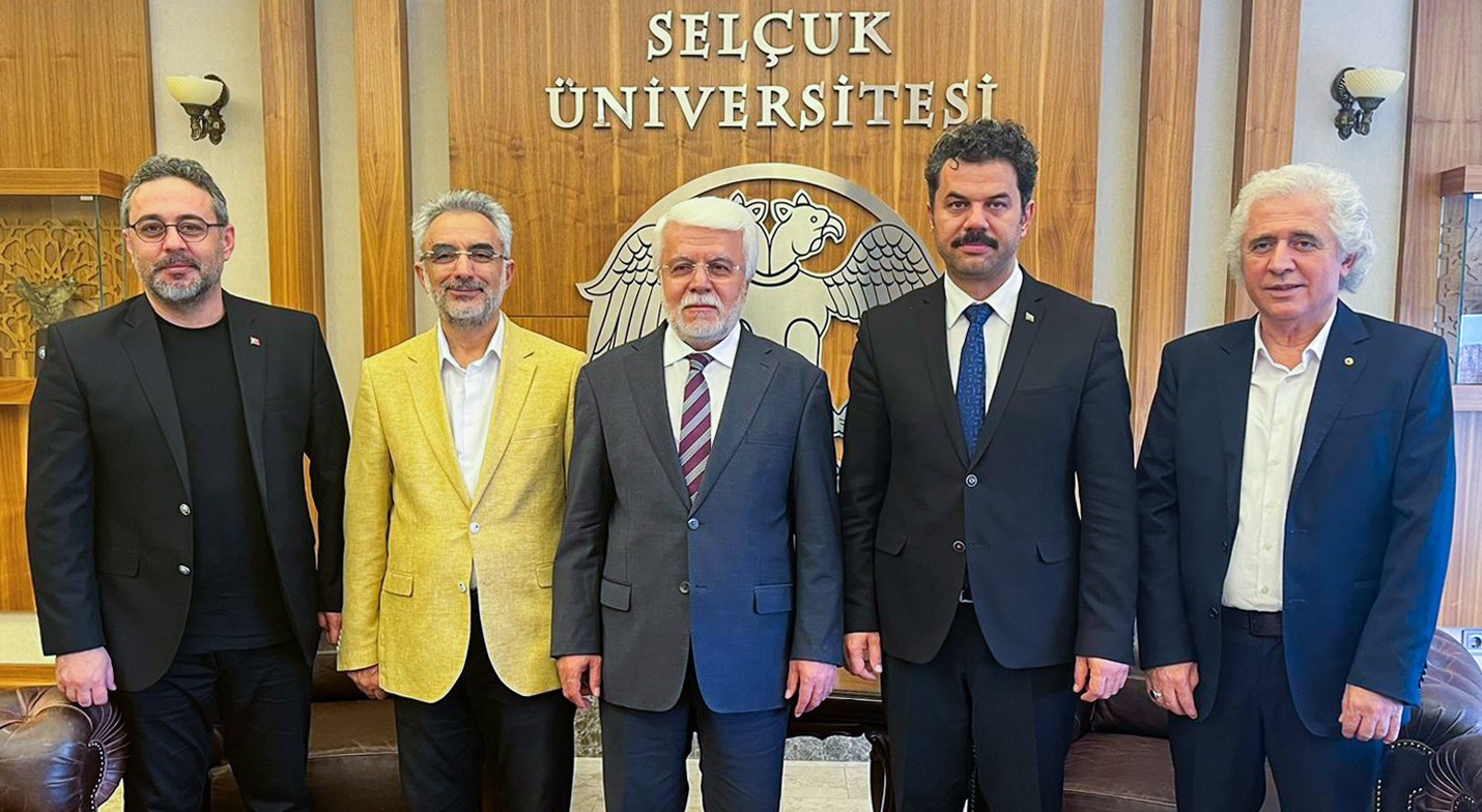 ANMEG Yönetim Kurulu Başkanı Ahmet Özer, Vakıf Mütevellileri Nurettin Bay ve İlker Özkan ile Kontv Haber Müdürü İbrahim Arıcı, Selçuk Üniversitesi yeni seçilen Rektör Prof. Dr. Hüseyin Yılmaz’a hayırlı olsun ziyaretinde bulundu.