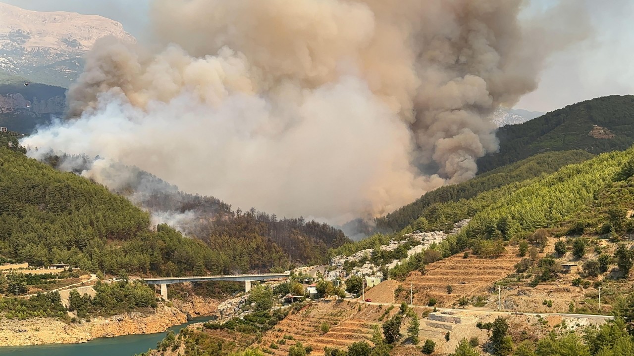 Yangın Dim Barajı'nın arka tarafına doğru ilerlerken, bölgeye çok sayıda kara ekibinin yanı sıra yangın söndürme helikopterleri de yönlendirildi.