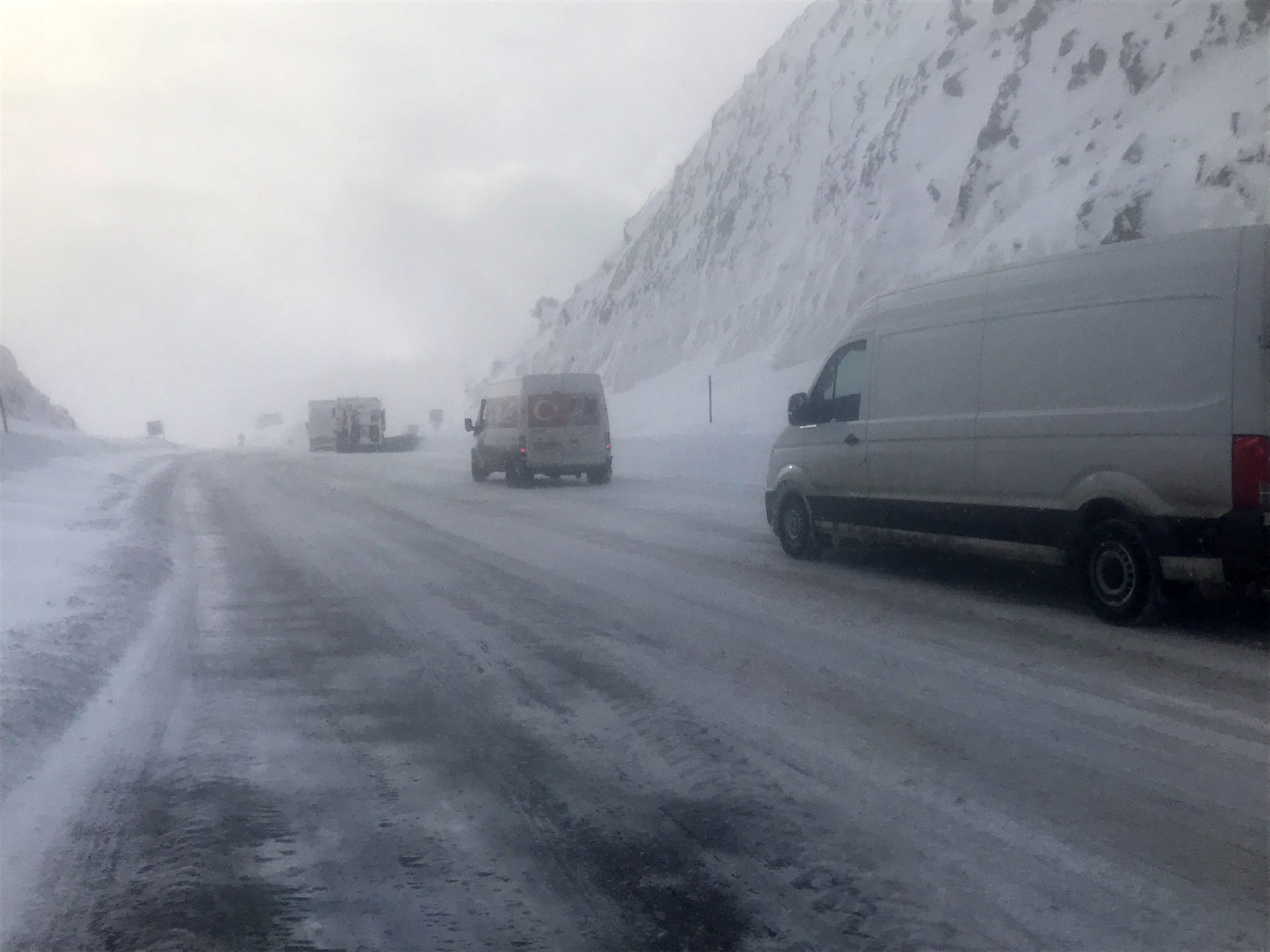 1825 rakımlı Alacabel mevkiinde hava sıcaklığının eksi 10 dereceye kadar düşmesi ile birlikte kar yağışı yerini tipi ve fırtınaya çevirdi.