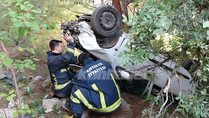 Antalya-Konya D-695 Karayolunda meydana gelen kazada yaklaşık 20 metre yükseklikten şarampole devrilen otomobildeki 2 kişi yaralandı.