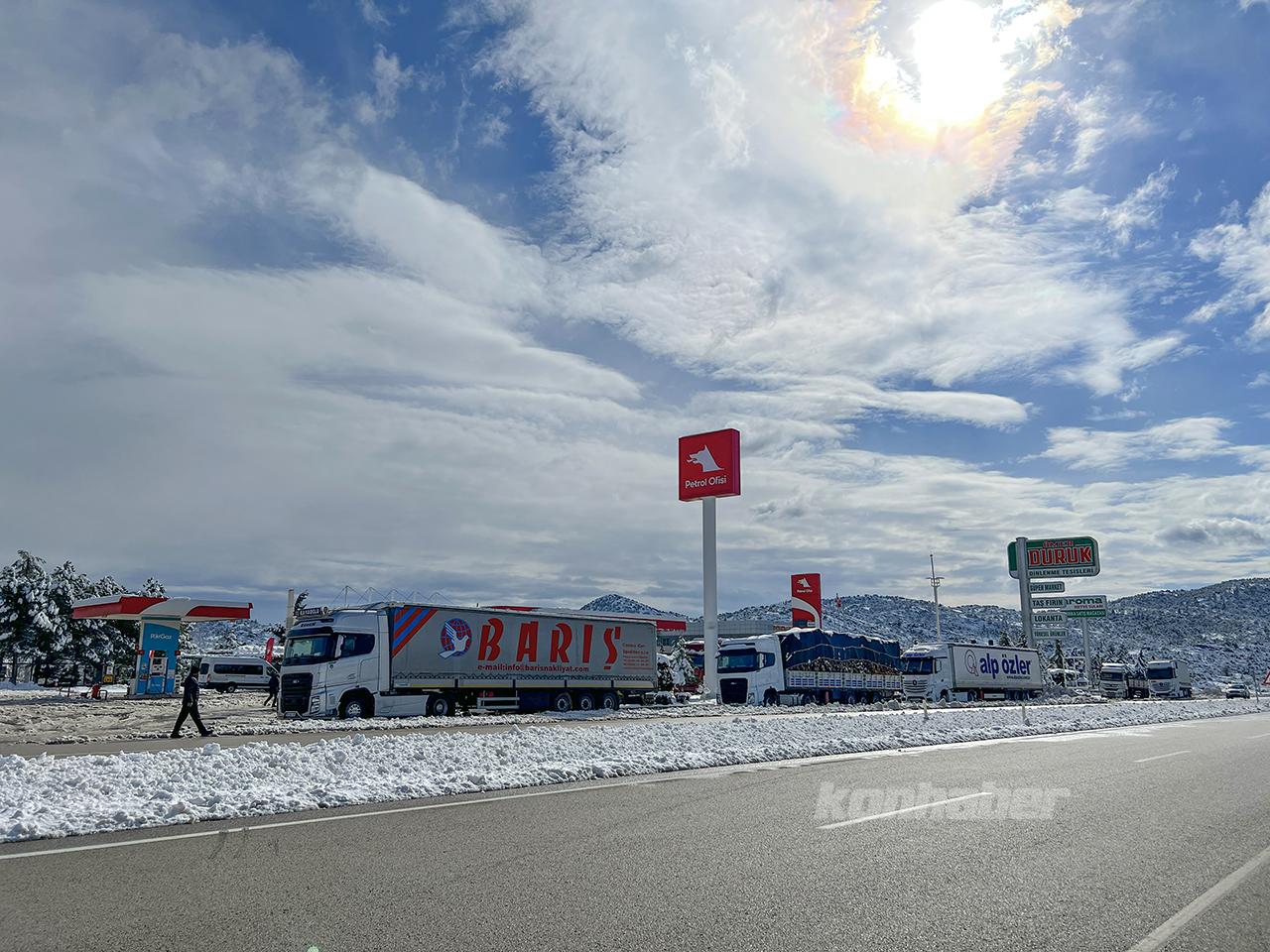Kaza riski nedeniyle geçişine izin verilmeyen tırlar ise bölgede bekletiliyor. Araçlarını Akseki Bölge Trafik Müdürlüğü ve dinlenme tesislerine park eden sürücüler, yolun tüm araçlar için ulaşıma açılmasını bekliyor.