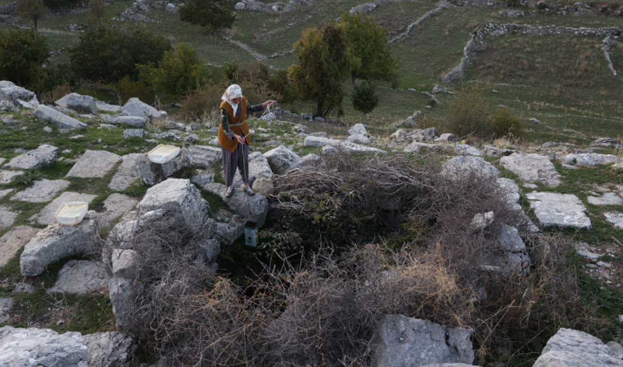 Toros Dağları'nın eteklerine kurulan Selge Antik Kenti'nin tarihi MÖ 500'lü yıllara dayanıyor. Birçok medeniyete ev sahipliği yapan, `dağ kenti` olarak bilinen ören yerinin son sakinleri ise Yörükler. Antik kent sınırları içerisindeki Altınkaya Köyü'nde yaşayan Yörüklerden 59 yaşındaki Fatma Sevinç, küçük yaşlardan itibaren çobanlık yapmaya başladı. Evlendikten sonra da yine aynı köyde yaşayan Sevinç, keçi sürüsünü antik kentte ve çevresinde otlatıyor.