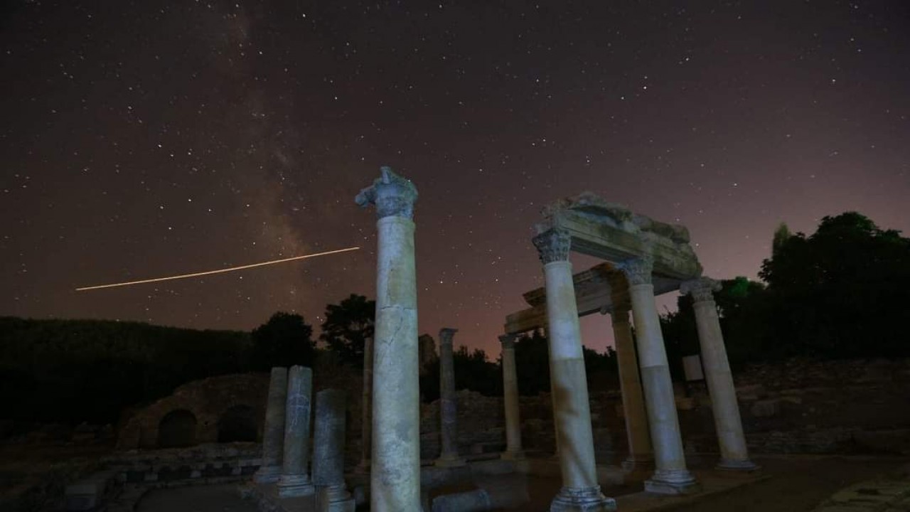 Muğla'da, halk arasında 'yıldız kayması' olarak nitelendirilen, yılda 8 kez gerçekleşen meteor yağmurlarının en görkemlisi Perseid meteor yağmuru 3 bin 500 yıllık Stratonikeia Antik Kenti'nde gözlendi.