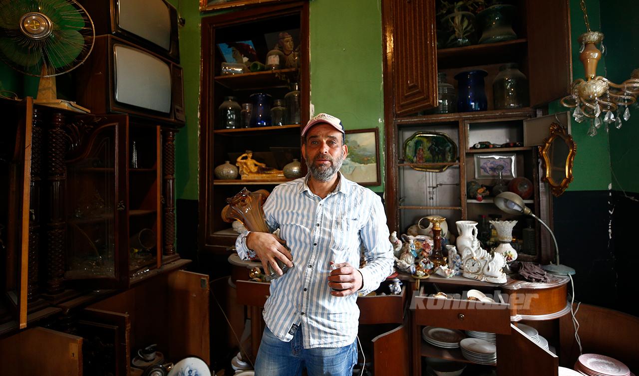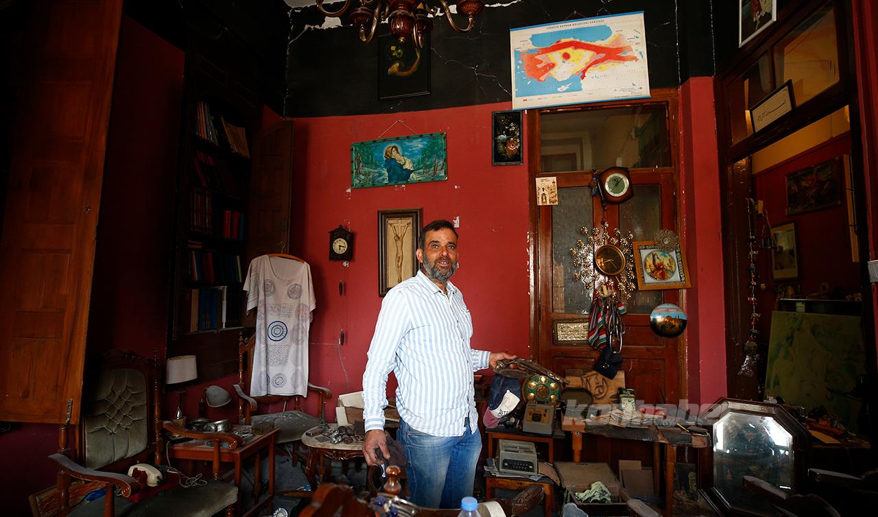 Hatay'da antikacılık yapan 50 yaşındaki Mehmet Serkan Sincan, depremin büyük yıkıma sebep olduğu memleketini terk etmeyerek mesleğini sürdürüyor.