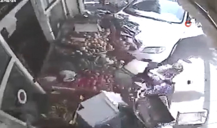 Görüntülerde, sebze ve meyvelere bakan kadının aracın çarpmasının etkisiyle yere düştüğü fakat daha sonra kaza hiç yaşanmamışçasına sebze seçmeye devam ettiği görüldü.