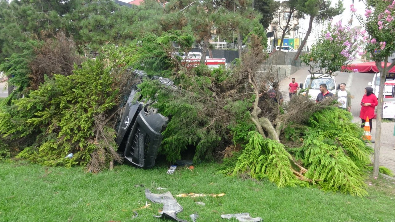 Kocaeli'nin Darıca ilçesinde, Ali Kavalcı'nın arızalanınca çalıştırmak için yokuş aşağı hareket ettirdiği hafif ticari araç, yolun sonundaki parka girip ağaca çarparak devrildi. Kazada, Kavalcı yaralandı.